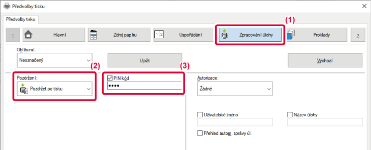 (5- až 8místný kód PIN) při tisku z počítače zlepšuje ochranu uložených dat.