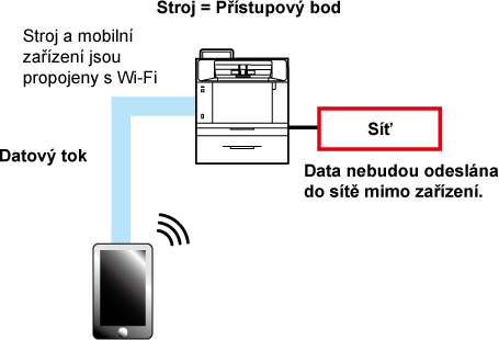 Přístroj lze nastavit jako přístupový bod a pro účely