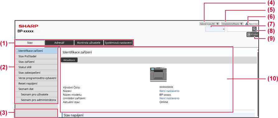 stránky, ze kterých lze stáhnout ovladač a software k tiskárně.