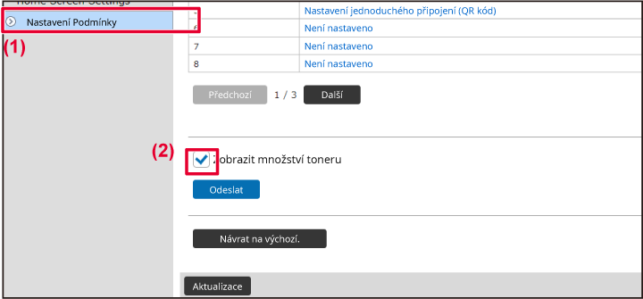 ).Zvolte možnost „Zobrazit množství toneru“ a klikněte na tlačítko [Odeslat].