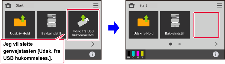 Indstillingerne bliver gemt i maskinen og anvendt.Du kan slette genvejstaster, der ikke bruges.