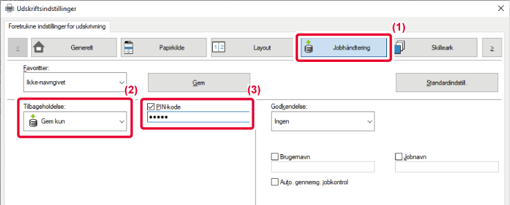 Indstilling af en adgangskode (5 til 8-cifret PIN-kode) ved udskrivning