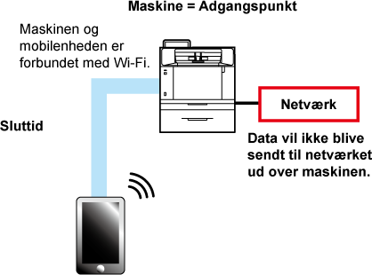 Maskinen kan indstilles som et adgangspunkt og kommunikere