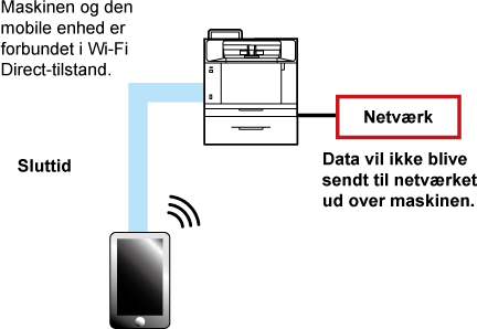 Maskinen og mobilenheden kommunikerer direkte via Wi-Fi.