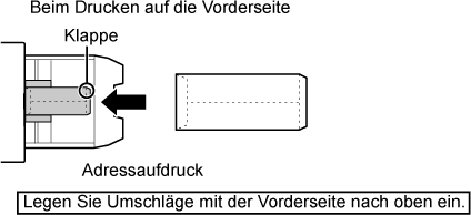 Es kann auf der Vorderseite von Umschlägen kopiert oder gedruckt werden. Legen Sie Umschläge mit der Vorderseite nach oben ein.