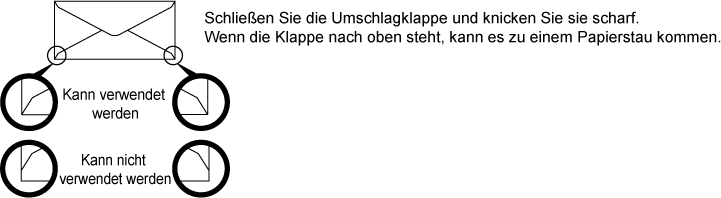 • Umschläge, deren Oberfläche beschädigt oder deren Form aufgrund von langer Lagerzeit oder Feuchtigkeitsabgabe verformt ist, können nicht verwendet werden.