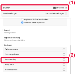 - Wählen Sie unter "Druckeroptionen" die Option [Auftragsbearbeitung].