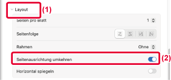 Druckbilds um 180 Grad, sodass es korrekt auf Papier gedruckt werden kann,