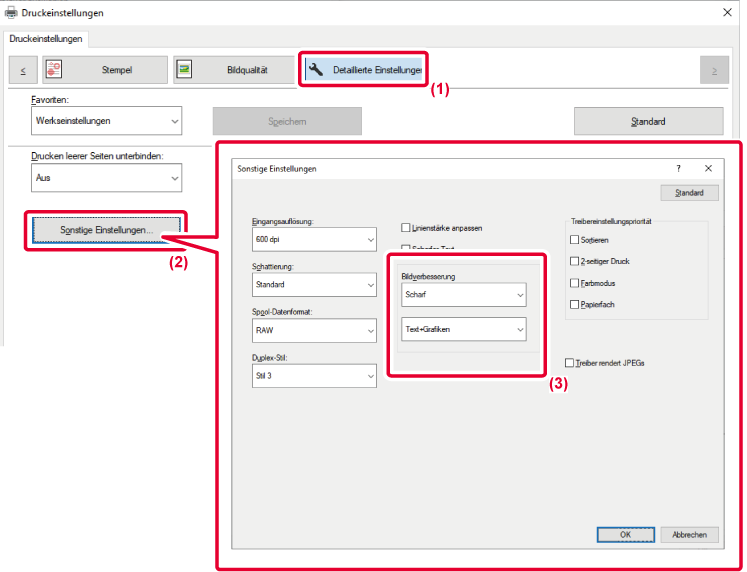 Sie können die Kanten von Text und Grafiken runder oder schärfer einstellen. Automatisch: Es wird eine optimale Bilderweiterung ausgeführt. Aus: Es findet keine Bilderweiterung statt. Schärfe: Die Bilderweiterung wird mit Schärfe angewandt. |
