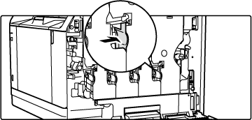 When the removed toner cartridge is placed, be sure to place it with the gear-mounted side facing up.