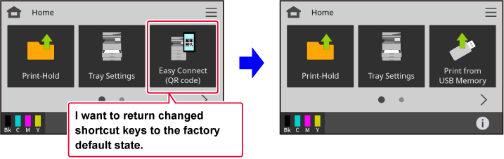The settings are saved in the machine and applied.You can delete unneeded shortcut keys.