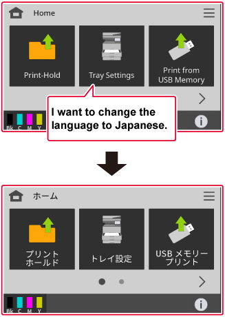 Some settings may require that you enter your user password after clicking [Home Screen Settings]. If you did not perform user authentication, you must enter the administrator password.