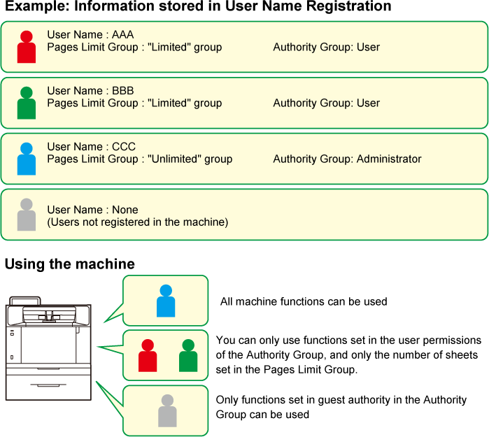 In [User Control] of the Web page and [System Settings] of [Authentication Settings]