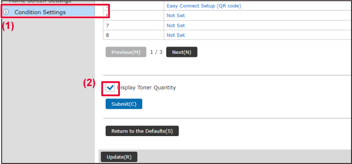 ).Check the "Display Toner Quantity" checkbox and click the [Submit] button.