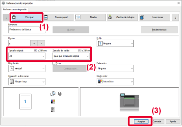 seleccionar en la ventana de propiedades del controlador de la impresora.