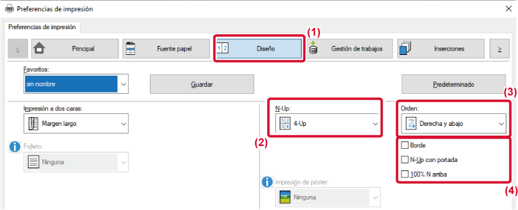 ) para trabajos como copia N-Up de dos