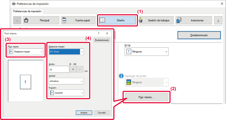 IMPRESIÓN CON CONFIGURACIÓN DE DESPLAZAMIENTO DE MARGEN (MARGEN)