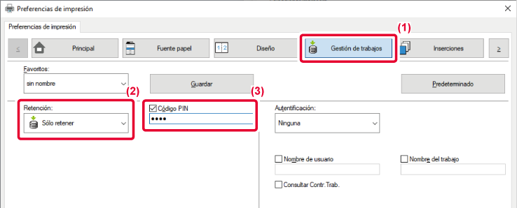 para almacenar un trabajo de impresión como un archivo en la memoria