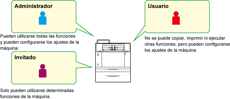 las funciones y los ajustes que pueden utilizar los usuarios pertenecientes