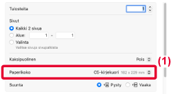 3. Paperikoko, paperin suunta, ja suurenna- /pienennä-asetukset voidaan valita.