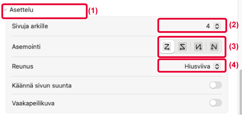 [4 otosta] (4 sivua arkilla), saavutetaan seuraavat tulostuksen tulokset