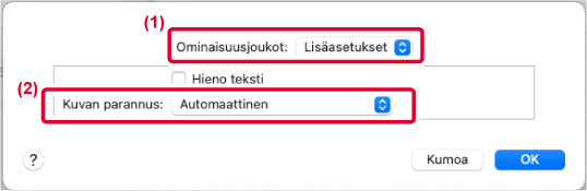 Voit tehdä tekstin ja grafiikan reunoista pehmeämpiä tai terävämpiä. Autom.: Suorita optimaalinen kuvan parannus. Pois: Kuvan parannusta ei käytetä. Terävä: Kuvan parannusta käytetään terävästi. |