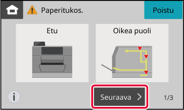 Näppäimen koskettaminen tuo esiin paperitukoksen poistamisohjeet.