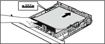 Chargez le papier côté impression vers le haut. La pile ne doit pas dépasser le repère (magasin 1 : maximum de 250 feuilles, magasin 2 : maximum de 500 feuilles).