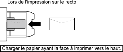 Seule la partie avant des enveloppes peut être imprimée ou recevoir une copie. Charger le papier ayant la face à imprimer vers le haut.