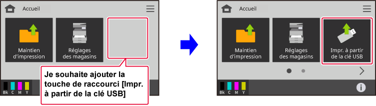 Les réglages sont enregistrés dans la machine et ils sont appliqués.Vous pouvez supprimer les touches de raccourci