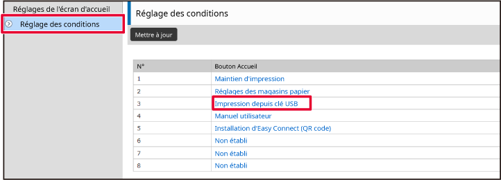 Cliquez sur [Réglage des conditions], puis cliquez sur le bouton [Revenir aux rég. initiaux].