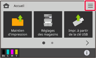 Certains réglages peuvent nécessiter que vous saisissiez votre mot de passe utilisateur après avoir cliqué sur [Réglages de l'écran d'accueil]. Si vous n'avez pas réalisé l'authentification utilisateur, vous devez saisir le mot de passe administrateur.