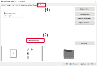 Pour une description des réglages, reportez-vous à l'Aide du pilote d'imprimante.Lorsque vous utilisez cette machine comme