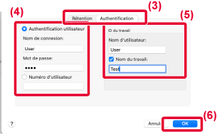 6. Saisissez le nom de l'utilisateur et le nom du travail (si nécessaire).