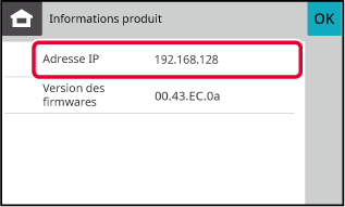 Vérifiez l'adresse IP dans les informations de la machine.