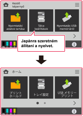 Átmenetileg megváltoztatja a kijelző nyelvét.
