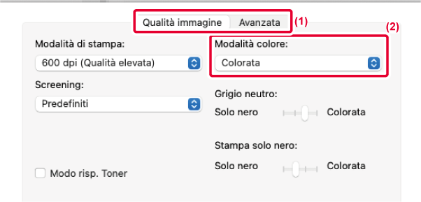 Per "Modalità colore" (insieme di colori usati per la stampa)