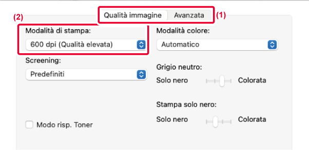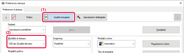 In "Modalità di stampa" (risoluzione) sono disponibili
