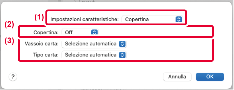 selezionare il vassoio e il tipo di carta da utilizzare per la copertina,