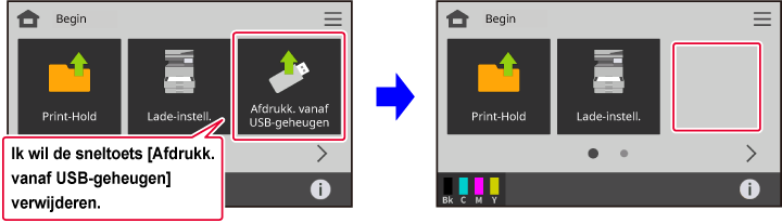 De instellingen worden opgeslagen in het apparaat en worden toegepast.U kunt onnodige sneltoetsen verwijderen.