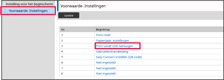Nadat u op [Instelling voor het beginscherm] heeft geklikt, moet u voor sommige instellingen mogelijk uw wachtwoord invoeren. Wanneer u geen gebruikersverificatie heeft uitgevoerd, moet u het wachtwoord van de beheerder invoeren.