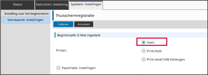 Wanneer u op de knop [Indienen] klikt, wordt het scherm [Thuisschermregistratie] gesloten.