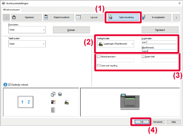 AFDRUKKEN ALS DE FUNCTIE GEBRUIKERSAUTHENTICATIE IS INGESCHAKELD