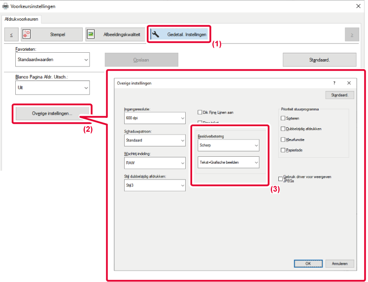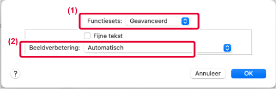 U kunt de randen van tekst en grafische beelden ronder of scherper maken. Auto: Optimale beeldverbetering uitvoeren. Uit: Er is geen beeldverbetering toegepast. Scherp: Beeldverbetering is scherp toegepast. |