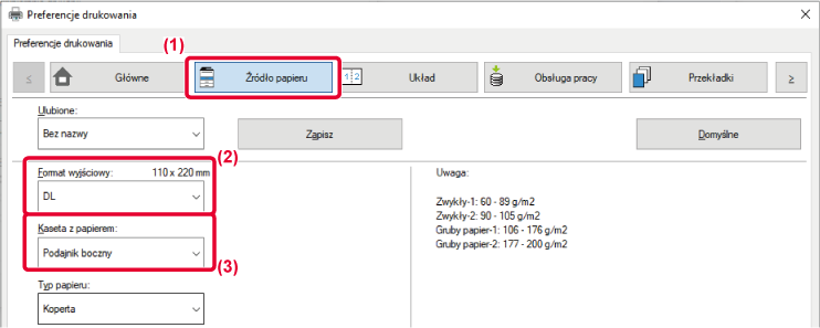 na kopertę, ustawienie [Typ papieru] jest automatycznie ustawiane