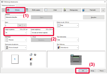 Rozpocznie się drukowanie.Ekran ustawień sterownika