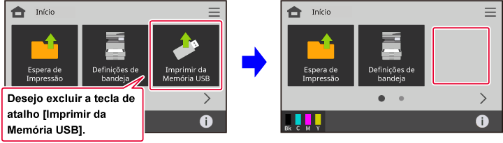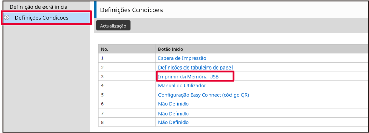 Algumas definições exigirão a introdução da palavra-passe de utilizador após clicar em [Definição de ecrã inicial]. Se não tiver sido efetuada a autenticação do utilizador, será necessário introduzir a palavra-passe de administrador.