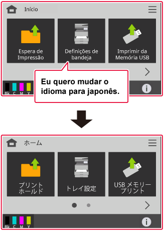 Depois de reiniciar a máquina, o idioma voltará ao idioma de visualização predefinido.