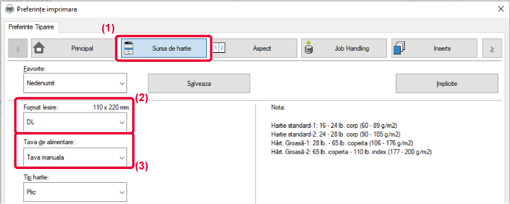 dimensiunea şi tipul hârtiei folosite pentru tipărire, precum şi