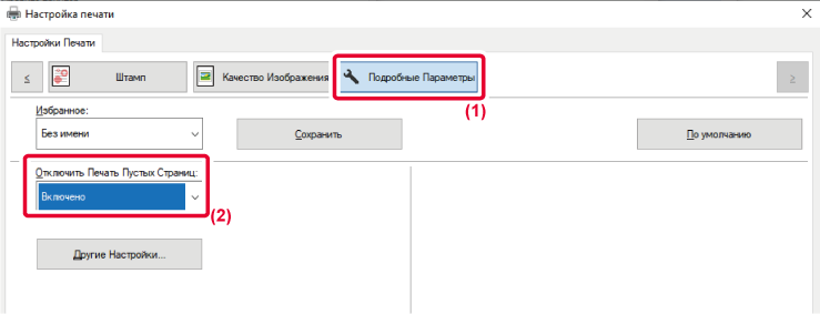 2. В поле [Отключить печать пустых страниц] выберите значение [Включено].
